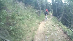 Inizia ora la parte a mio avviso più divertente del giro: un lunghissimo single-track in leggera discesa di 3km quasi ininterrotti! Fantastico!!!